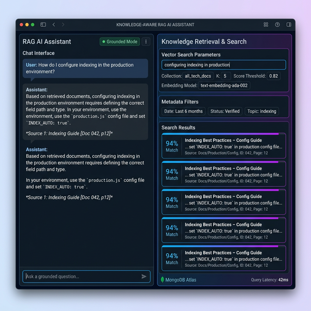 Developed a robust Retrieval-Augmented Generation (RAG) pipeline featuring similarity validation and metadata-based filtering to eliminate hallucinations, leveraging a MongoDB-backed knowledge store for structured response enforcement.